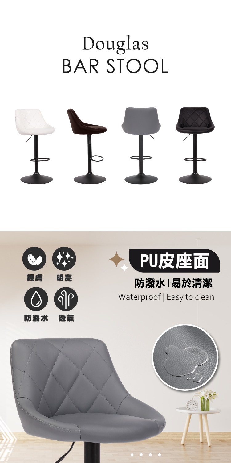 [E-home]Douglas道格拉斯菱格紋PU升降黑腳吧檯椅,時尚與古典的結合滿足生活品味,增添室內設計亮麗的擺設。