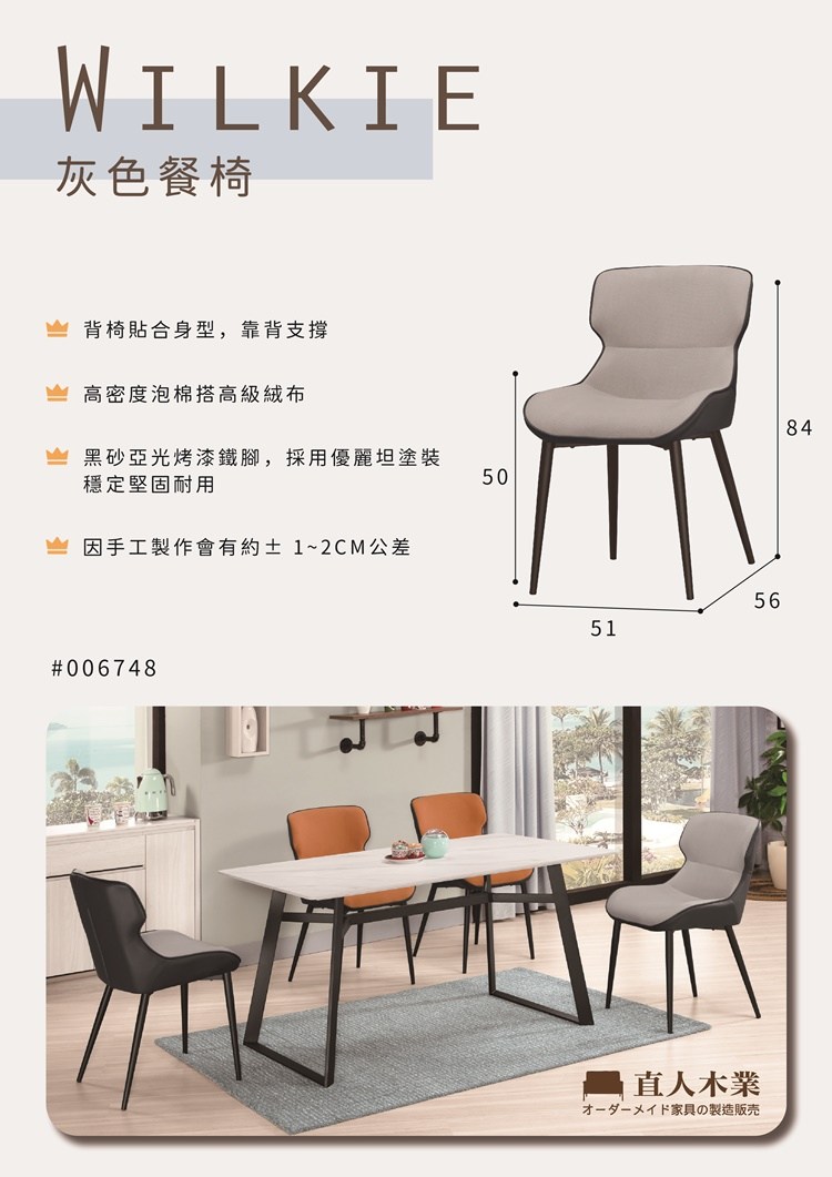 MUNA家居 維爾基餐椅(灰色布)(五金腳) 50.5X56X84cm