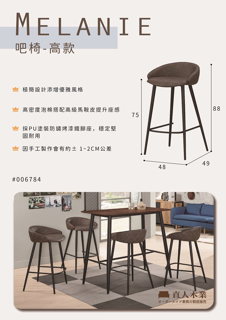 直人木業-MELANIE吧椅-高款