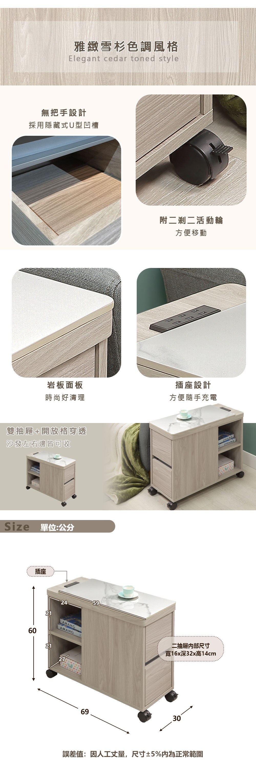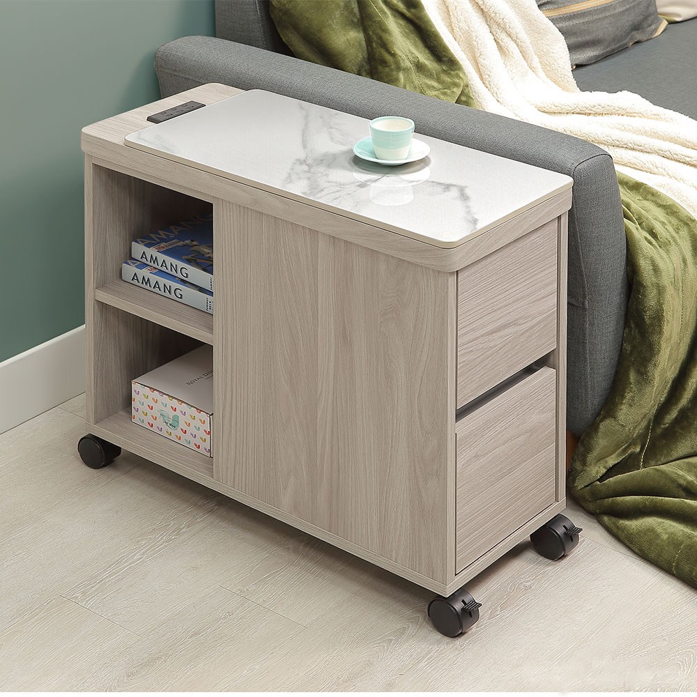 Homelike 喜家居雪杉色岩板附插座活動沙發邊櫃(2504)