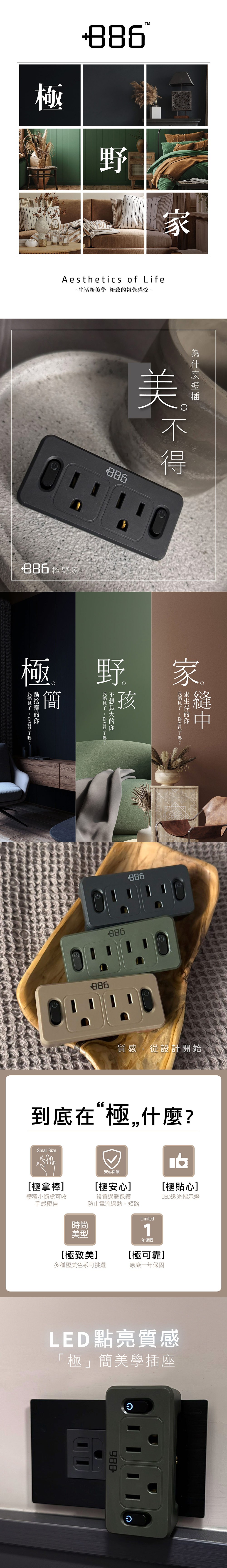 +886 極野家 1開1壁插 防雷擊 V2 迷霧灰