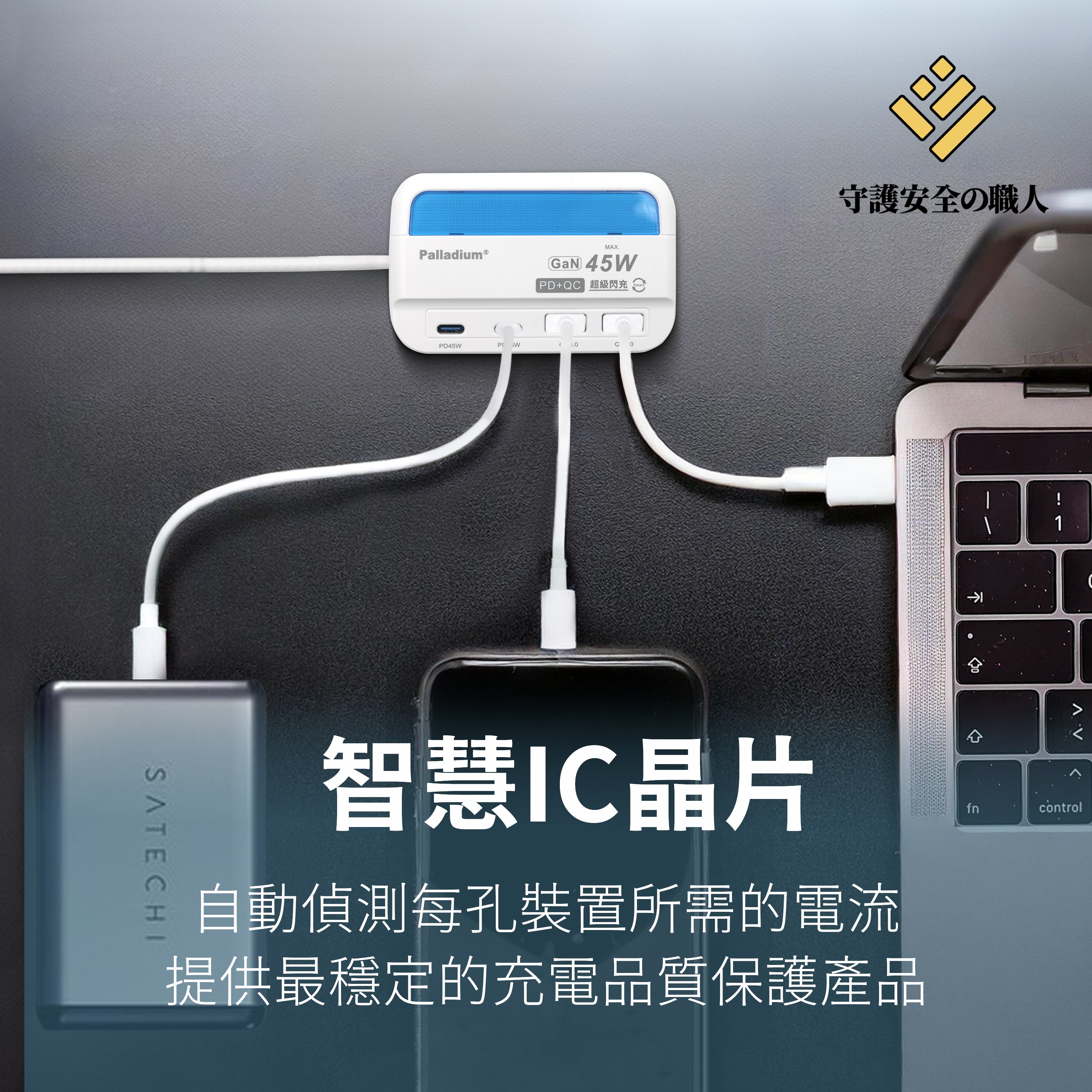 Palladium UB-07 45W PD+QC3.0 4Port USB 氮化鎵超級閃充電源供應器