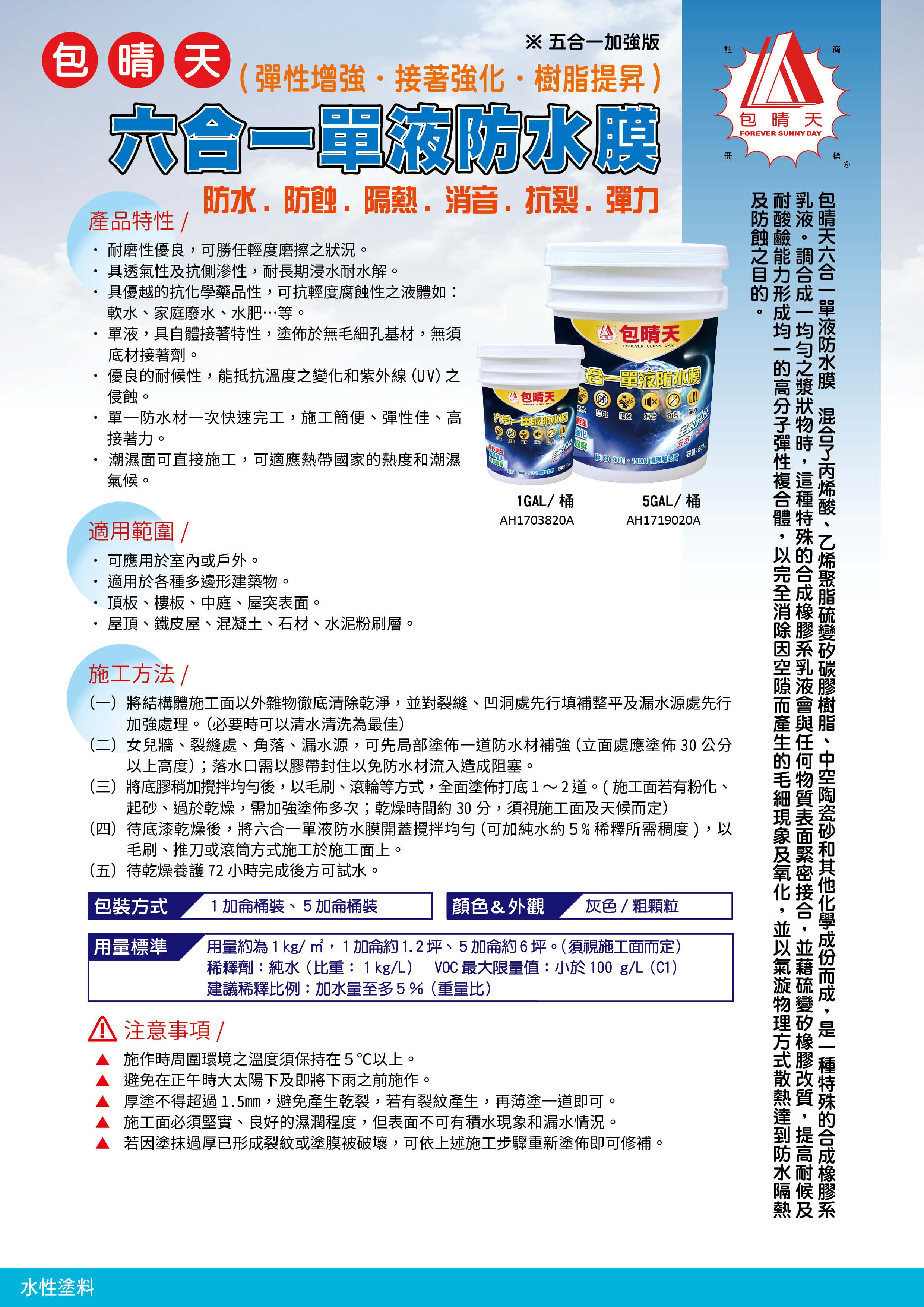 【包晴天】六合一單液防水膜(防水‧防蝕‧隔熱‧消音‧抗裂‧彈力)灰色