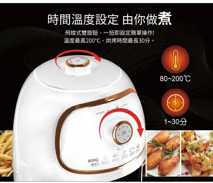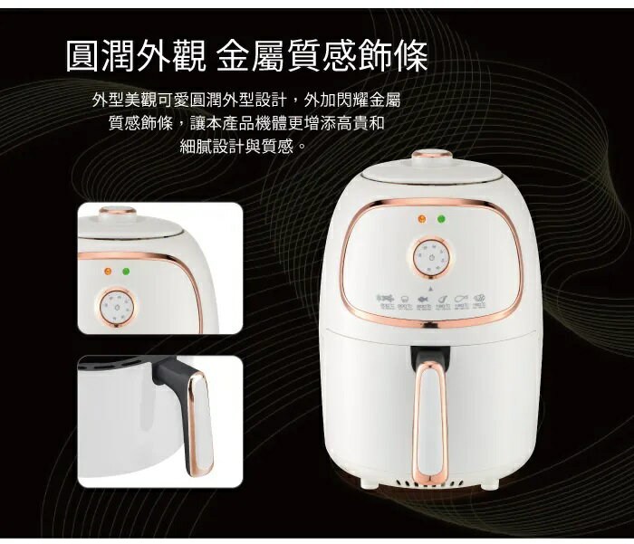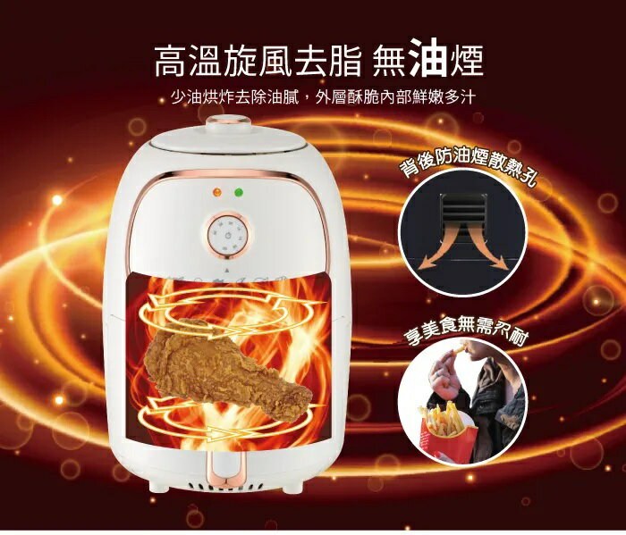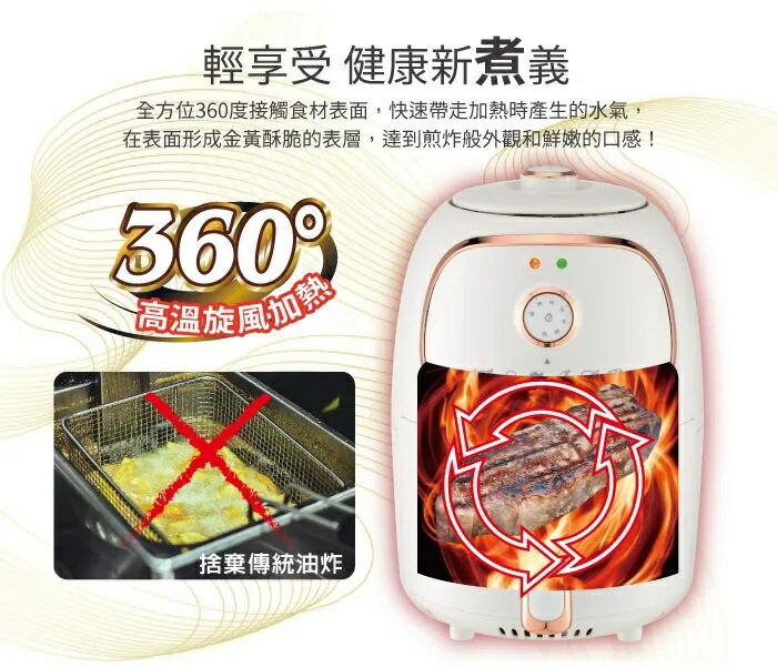 HYD 品宅趣 經典氣炸鍋 1000W 1.8L 360°零死角熱循環 110V 配隔油盤 D-552A 白色