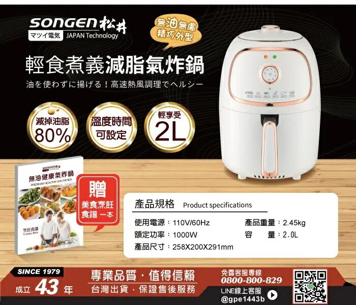 【日本SONGEN】松井輕食煮義減脂美食氣炸鍋/烤箱/烘烤爐(SG-200AF(W))