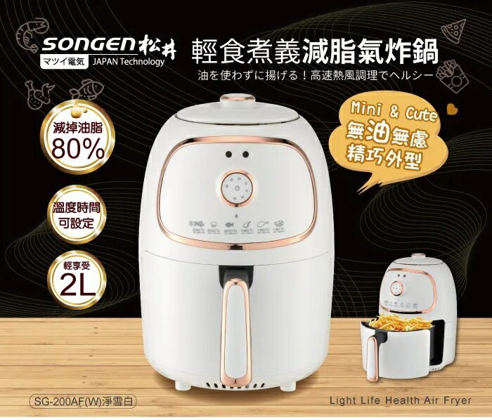 SOnGEn 松井 輕食煮義減脂美食氣炸鍋 無油煙 時間溫度好設定 最高200℃/最長30分 2.0L SG-200AF 璀璨金