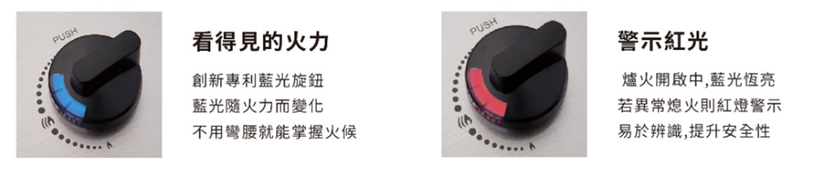 - LED藍光旋鈕 火力可目視化 不用彎腰