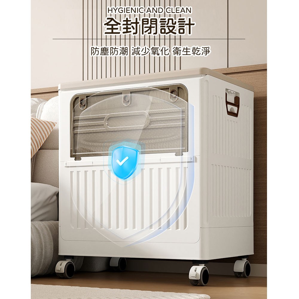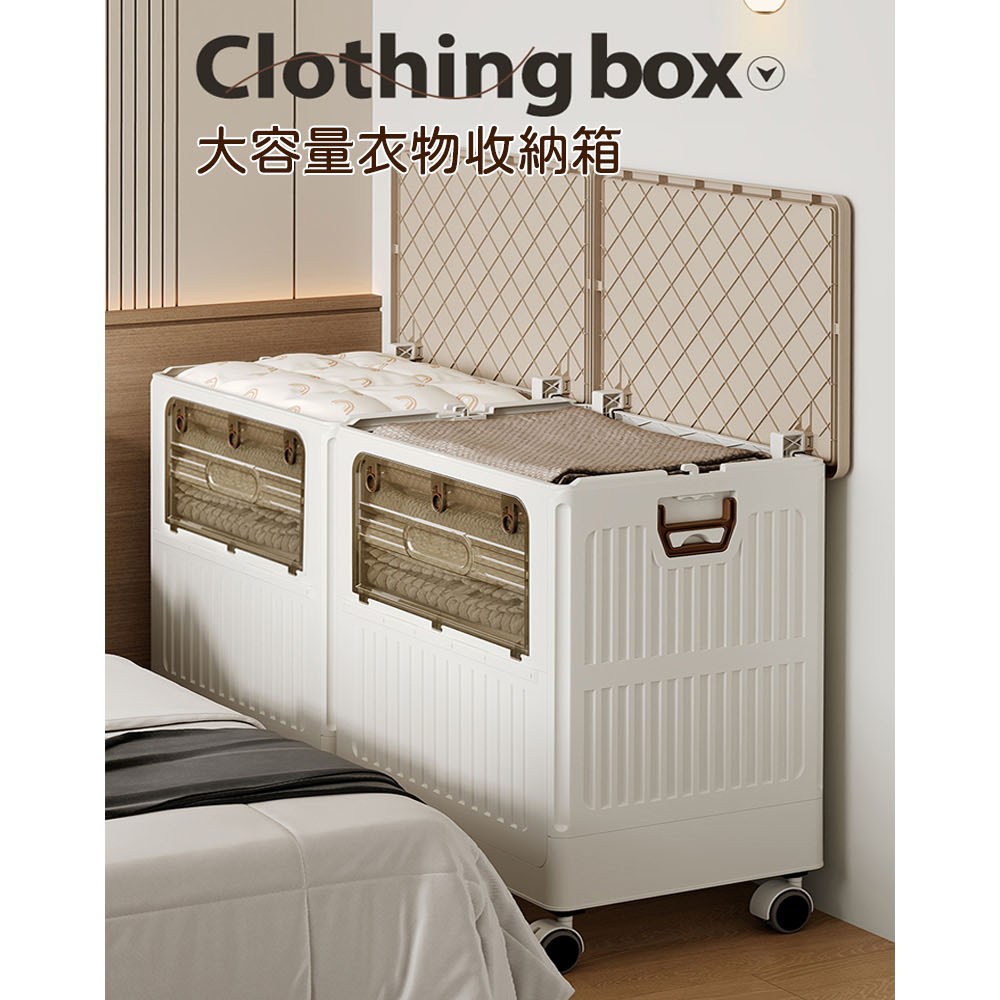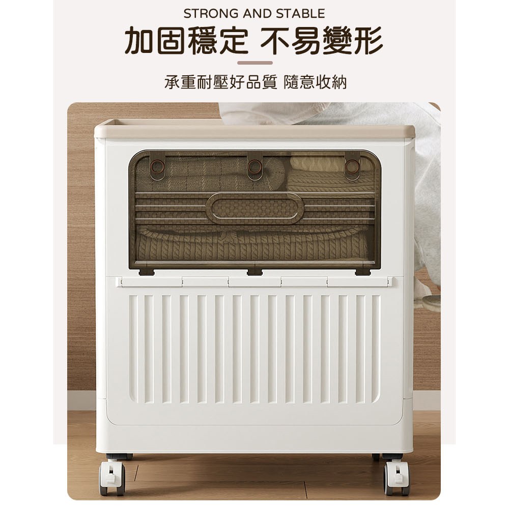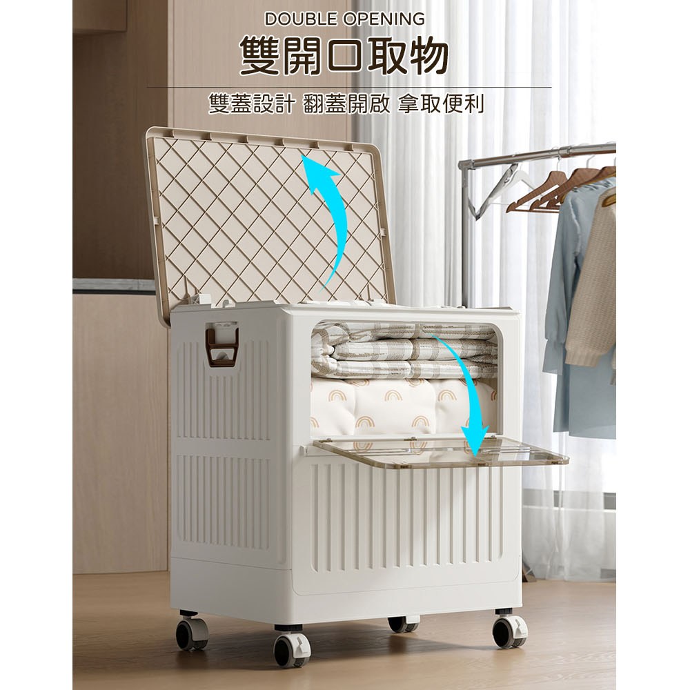 點我下載【AOTTO】125L大容量附輪雙開折疊收納箱(收納箱 折疊箱 玩具箱 推車 購物車奶油色