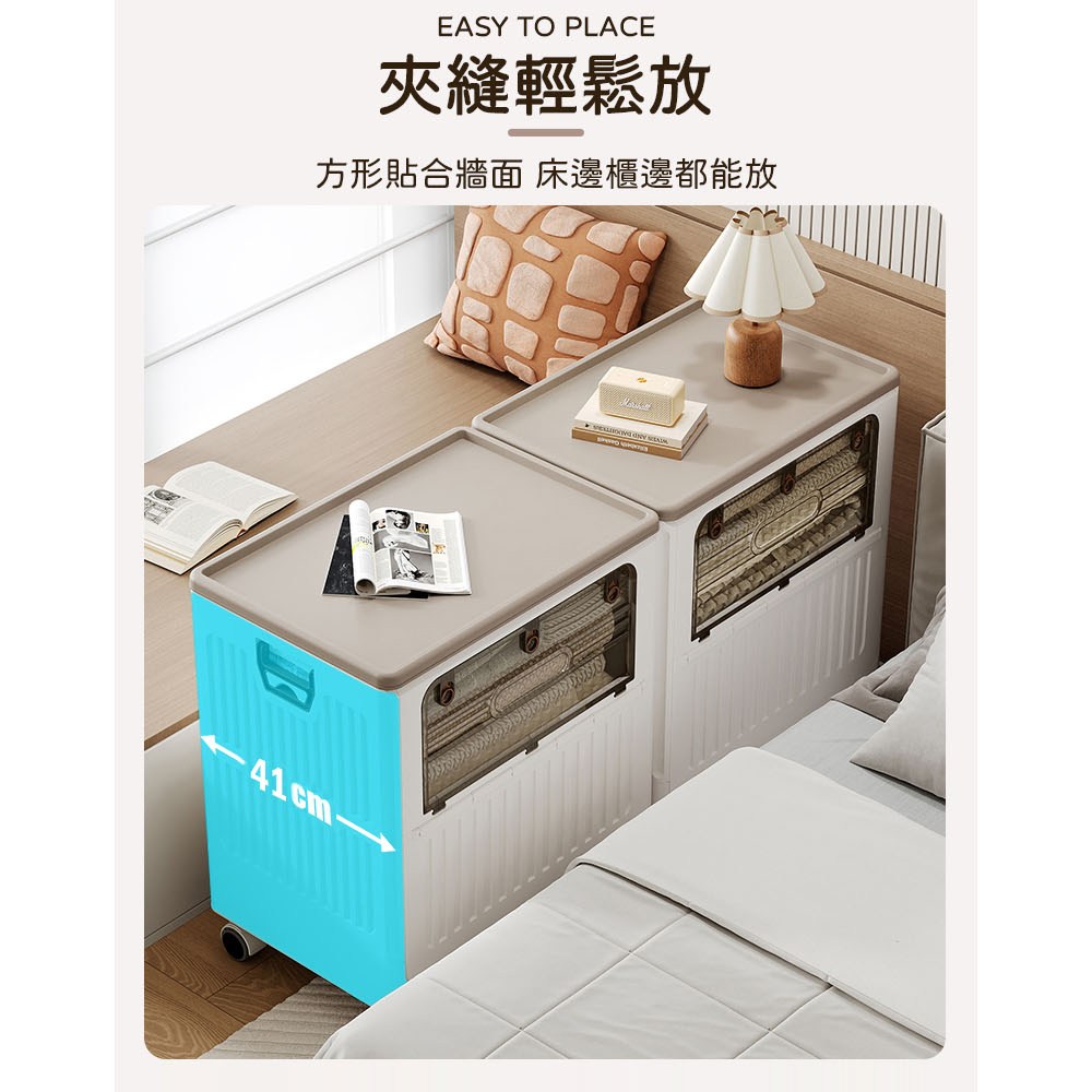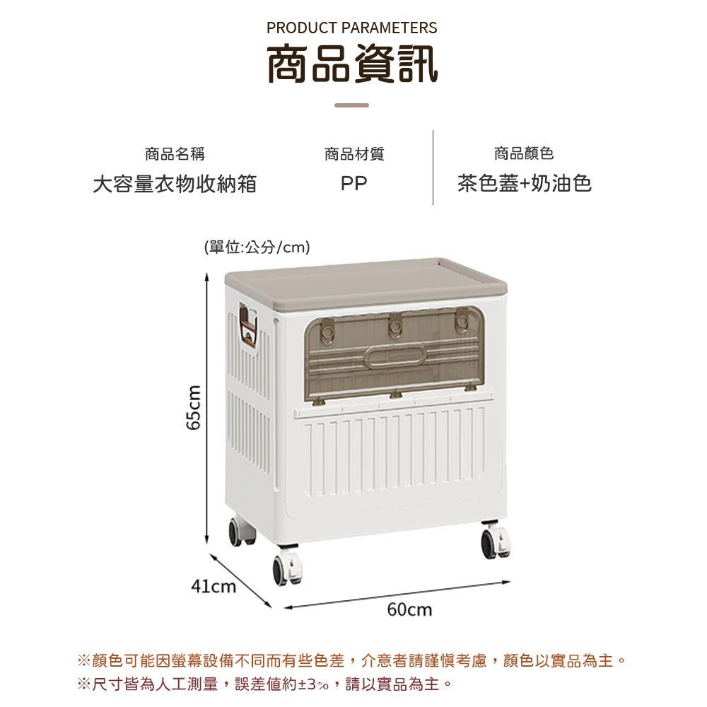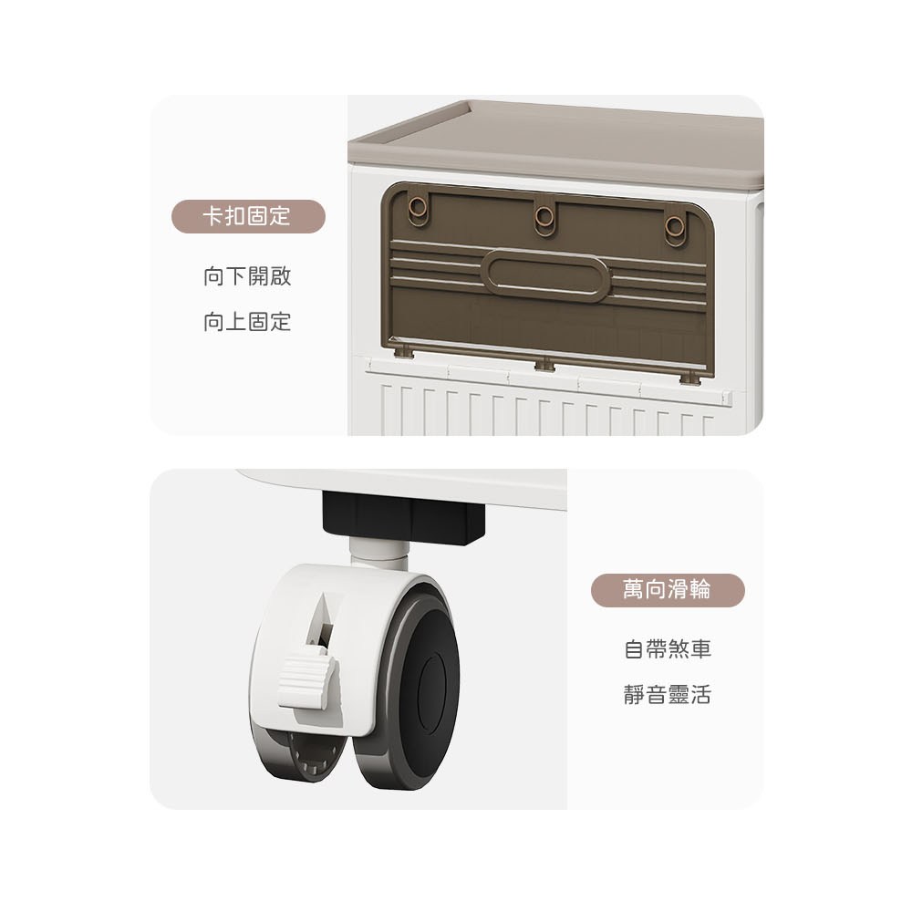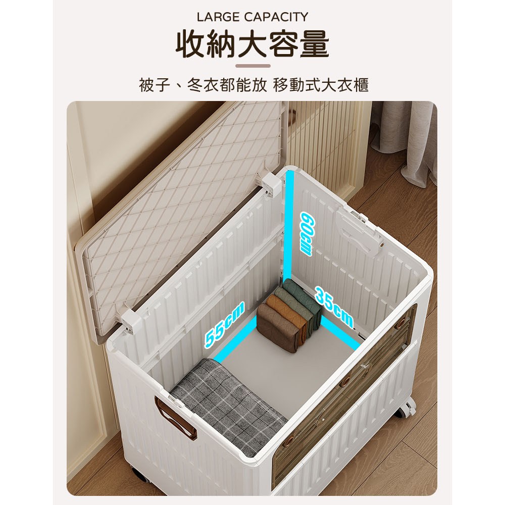 點我下載【AOTTO】125L大容量附輪雙開折疊收納箱(收納箱 折疊箱 玩具箱 推車 購物車奶油色