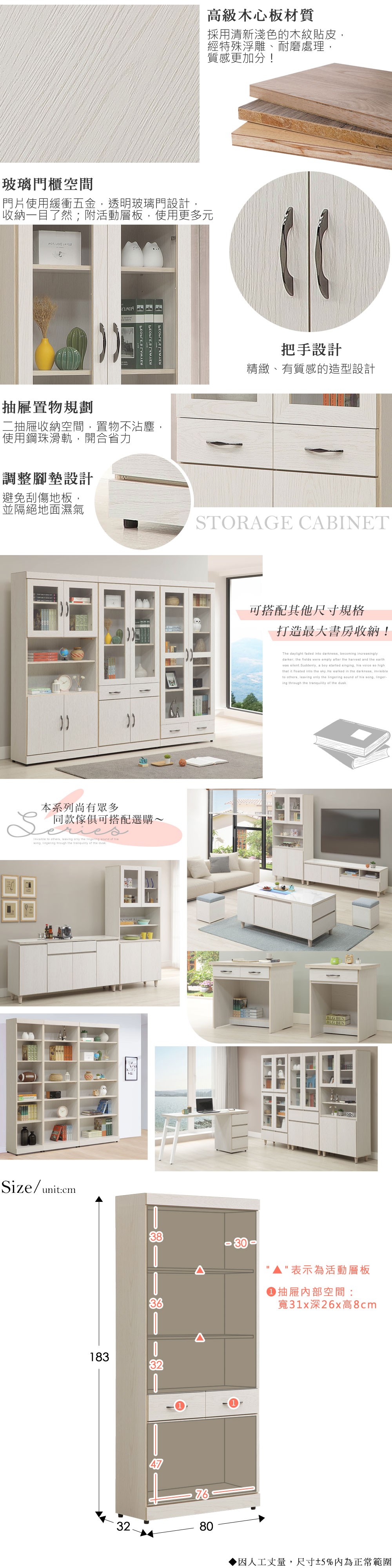 直人木業-DORIS現代風下抽玻璃高被櫥書櫃80公分