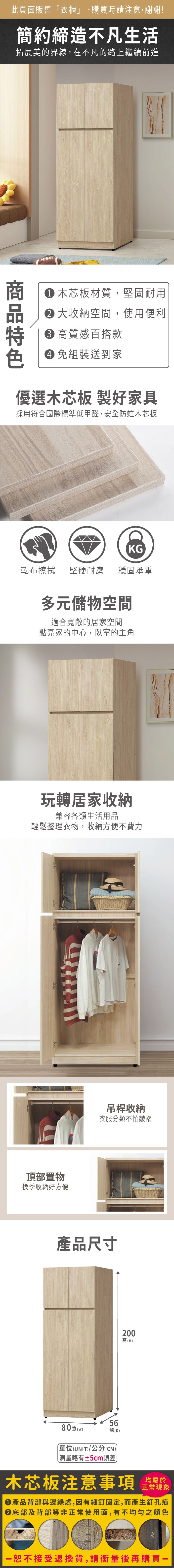 ASSARI-唯芯2.7尺單吊衣櫃(寬80x深56x高200cm)