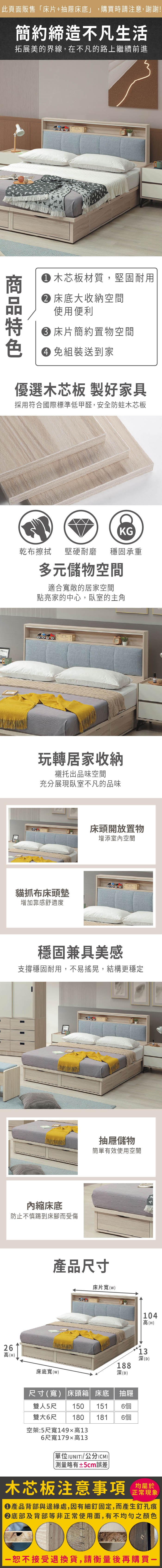 AS DESIGN 雅司家具-午茶6尺床底-182×188×30.3cm