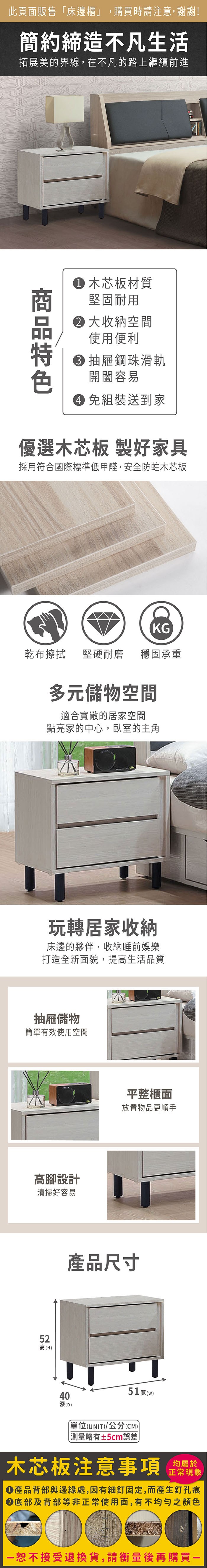 ASSARI-沐澄床邊櫃(寬50x深40x高51cm)