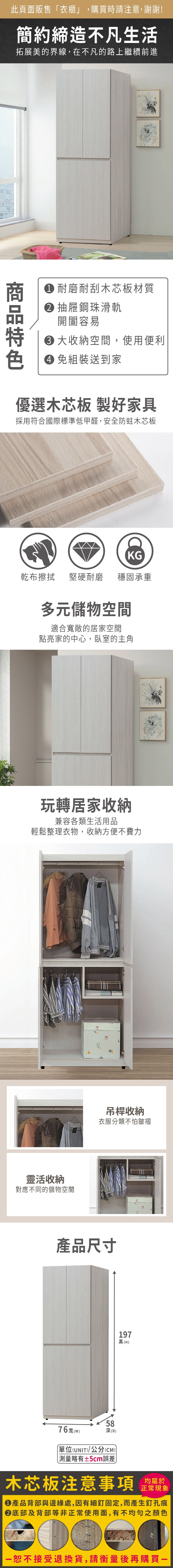 ASSARI-唯芯2.7尺雙吊衣櫃(寬80x深56x高200cm)