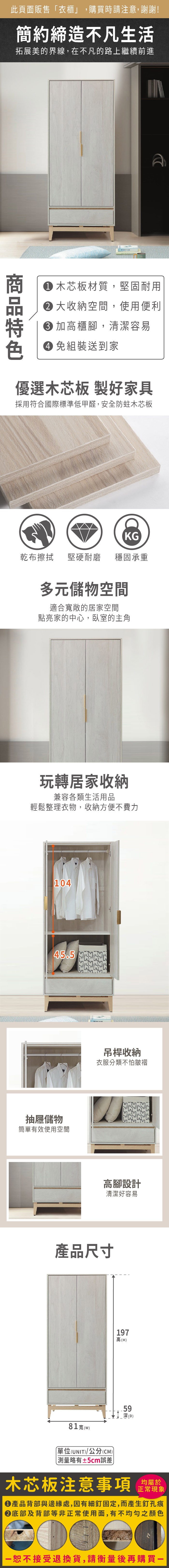 《HOPMA》美背二門一格組合式衣櫃 台灣製造 衣櫥 收納櫃 衣物收納櫃-淺橡(漂流)木