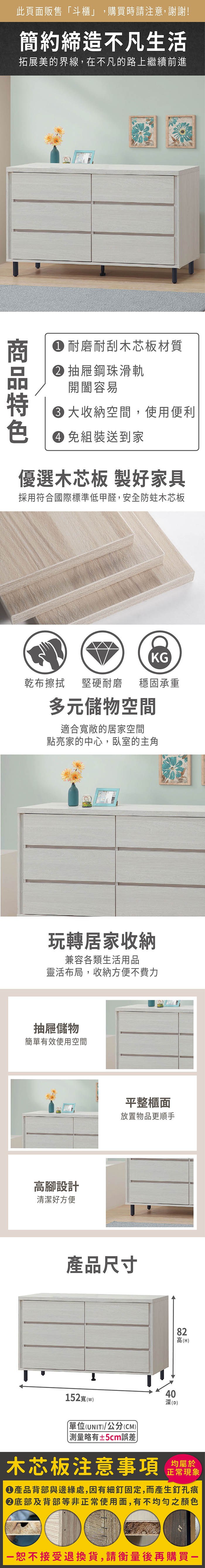 ASSARI-凱麗5尺六斗櫃(寬152x深40x高82cm)