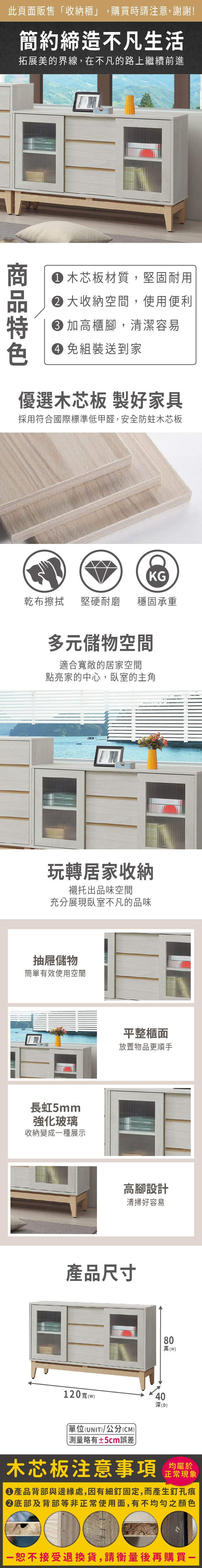 直人木業-BOBO北歐韵彩簡約風櫥櫃121公分