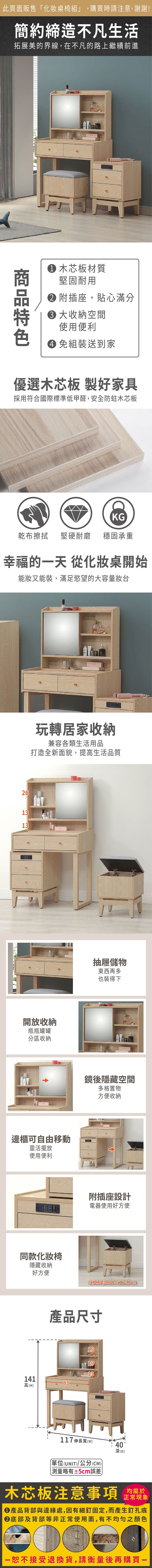 林氏木業北歐原木風抽屜櫃附鏡可伸縮化妝桌組 UE1C (附妝凳 JF1H) (H014378516)