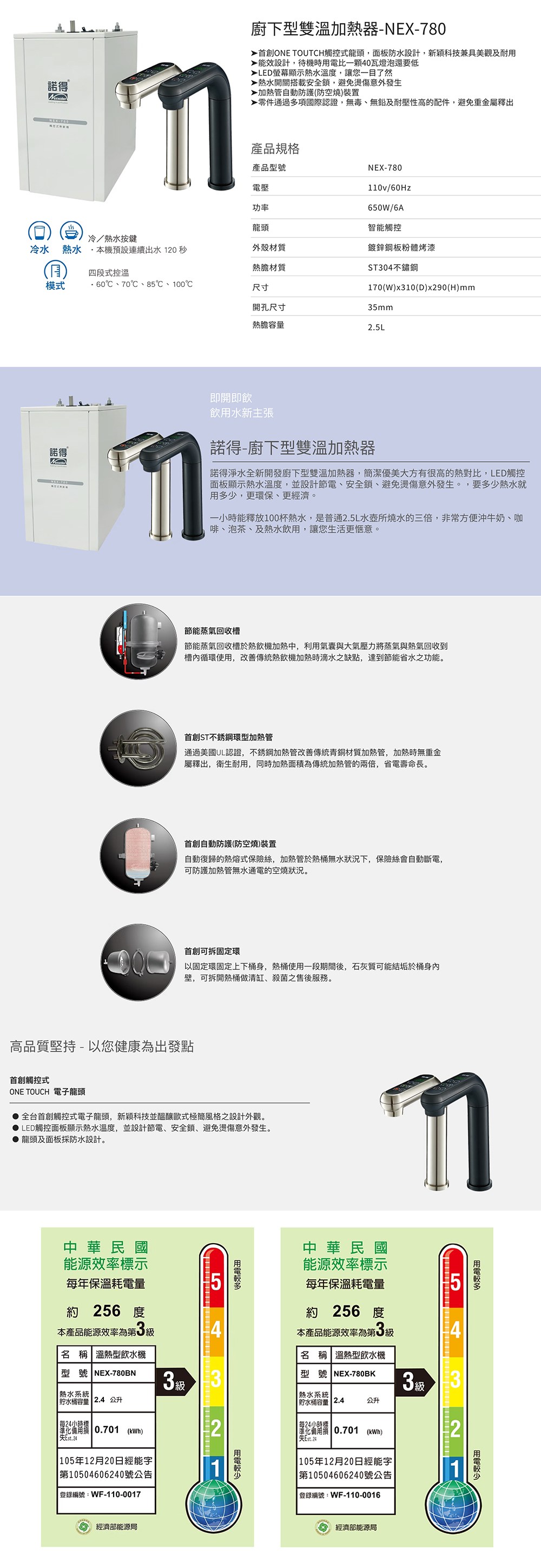 諾得淨水 觸控式加熱器 WaterConditioner強化除鉛軟水淨水器 NEX-780+24.2.351-500A黑色龍頭