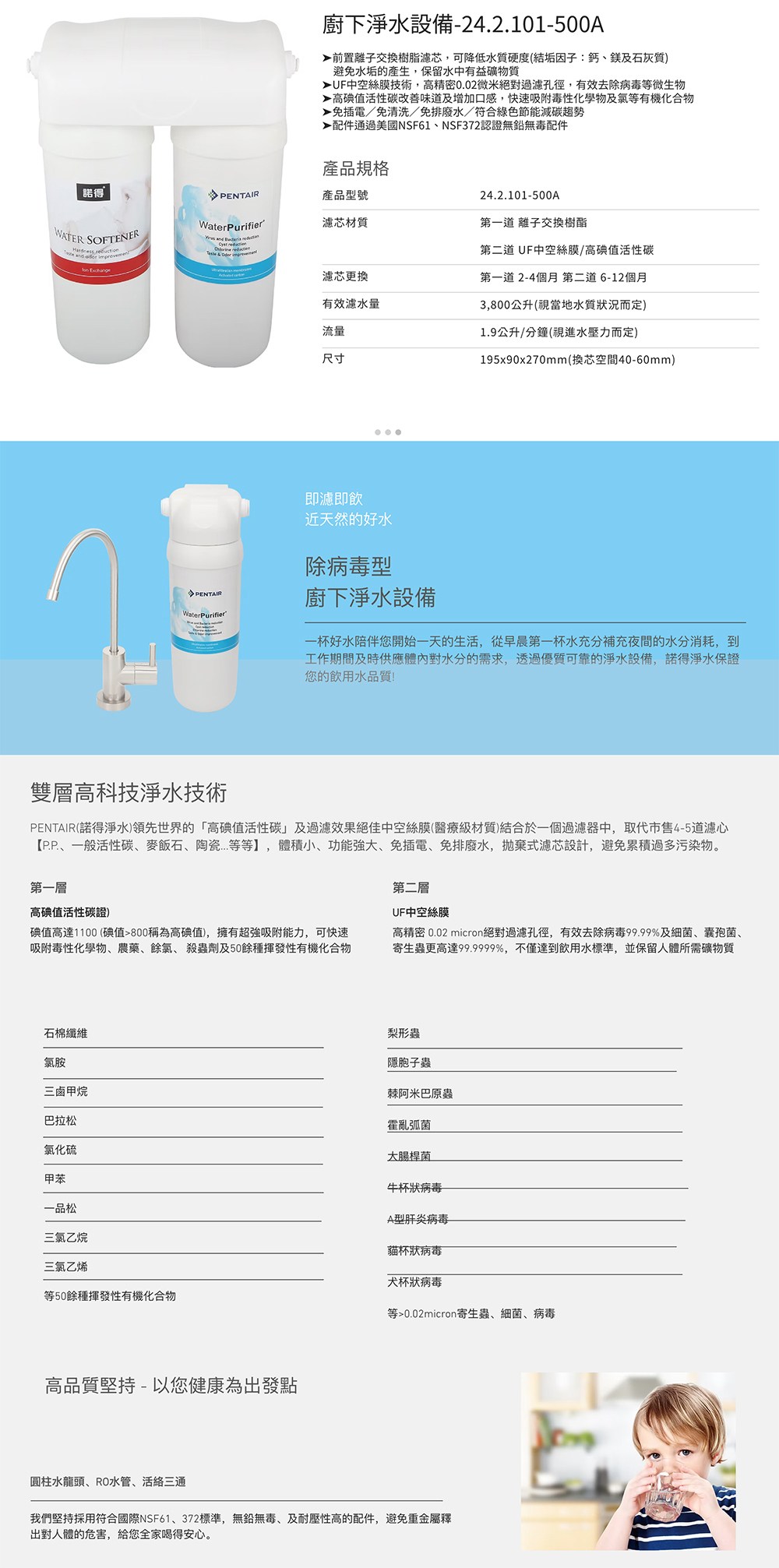 諾得淨水 三溫氣泡水飲水機 WaterPurifier中空絲膜軟水淨水器 NEX-680+24.2.101-500A銀色龍頭