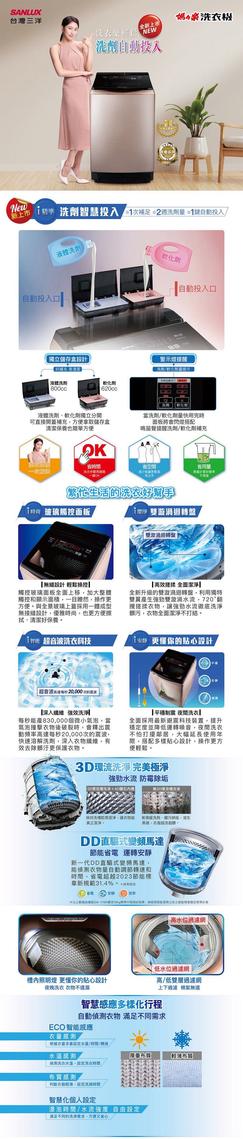 SANLUX台灣三洋17公斤DD直流變頻直立式洗衣機 SW-V17AD~含基本安裝+舊機回收
