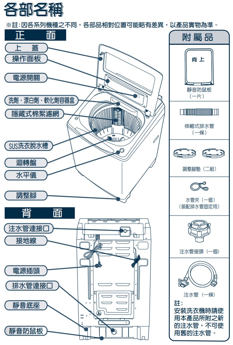 ◎保固:全機原廠保固一年 , 洗衣機電子基板、軸受組立、吊棒組立、洗衣馬達、脫水馬達(不含排水馬達)及洗脫烘洗衣機馬達類、基板類、脫水總成等保證三年,需上網登錄,非家庭使用,商品使用於營業地點,公共場所、工廠、學校、政府機關、海邊、溫泉、有沼氣區、特殊區域....等,依保證書保固規定 (依原廠公告規定為主)
