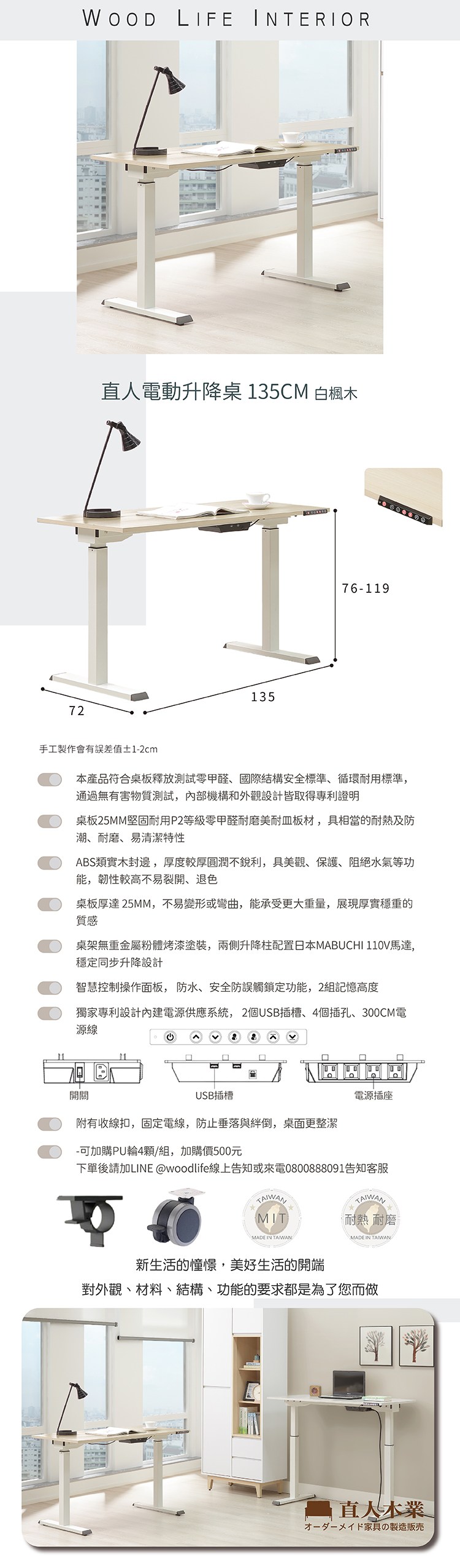 Kraftdale MINI 電動升降桌 電腦桌 辦公桌 白色
