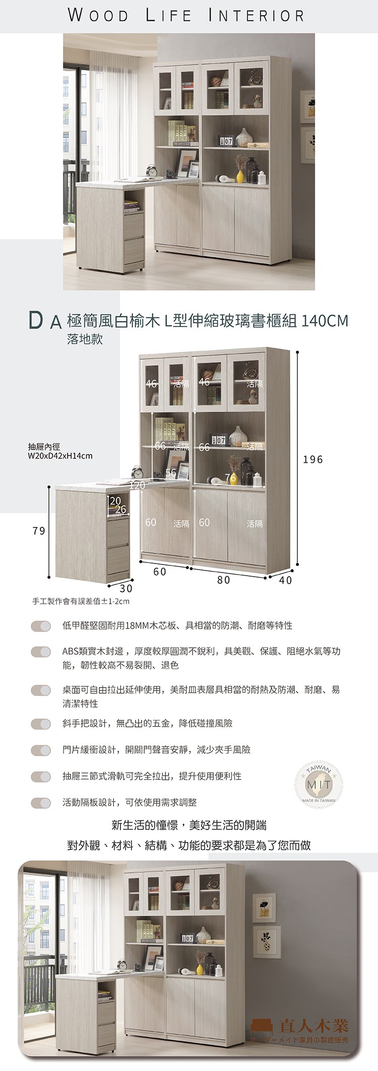直人木業-DORIS現代風玻璃高被櫥書櫃組160公分(下抽80公分+中抽80公分)