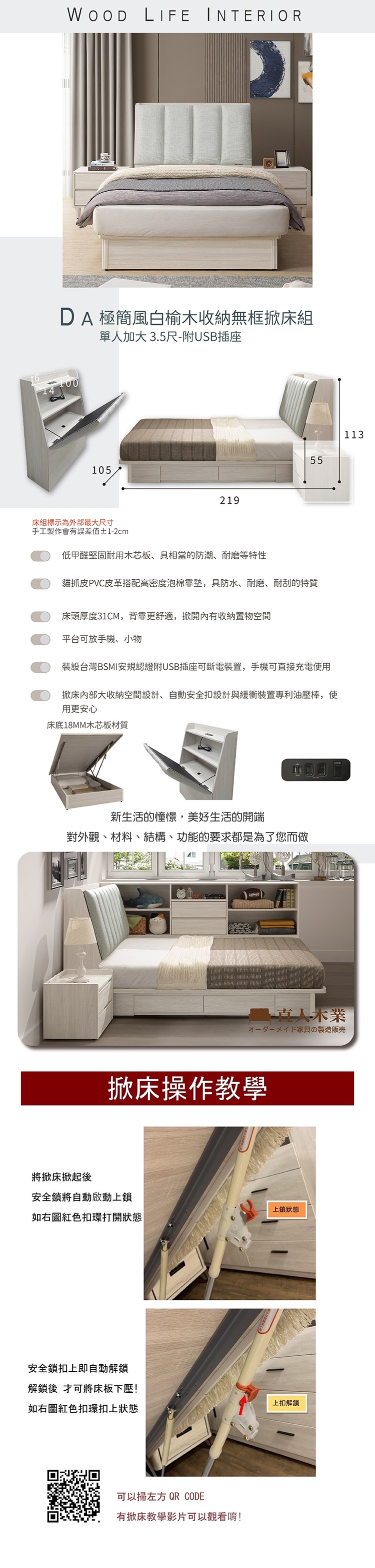 直人木業-DA極簡風白榆木收納無框掀床組-單人加大3.5尺