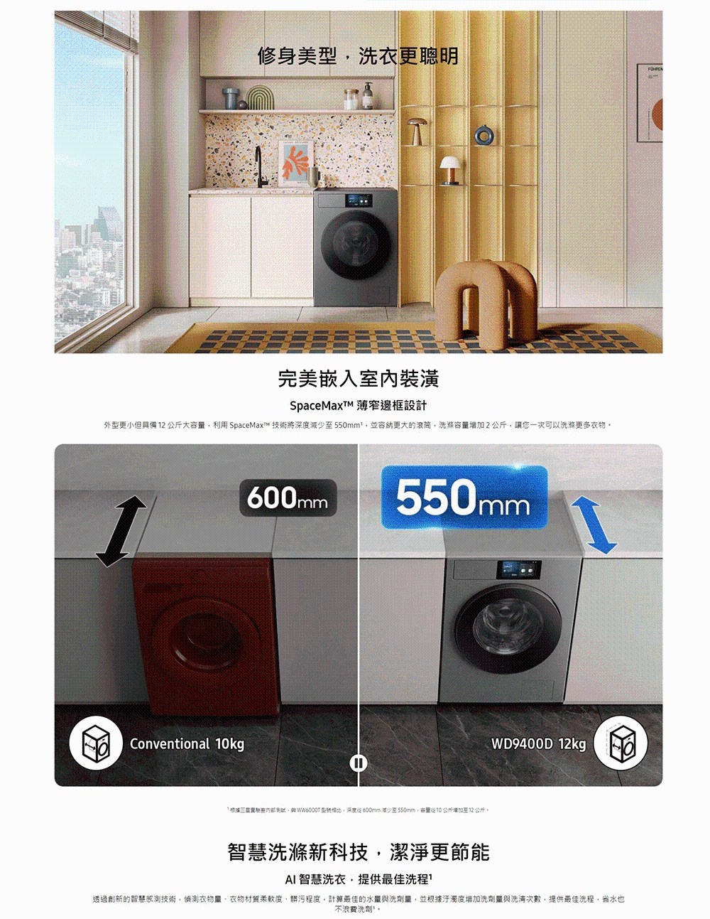 限期贈1千禮券 Samsung 三星 12KG BESPOKE設計品味系列 蒸洗脫烘智慧變頻滾筒洗衣機 WD12DB9B84GDTW