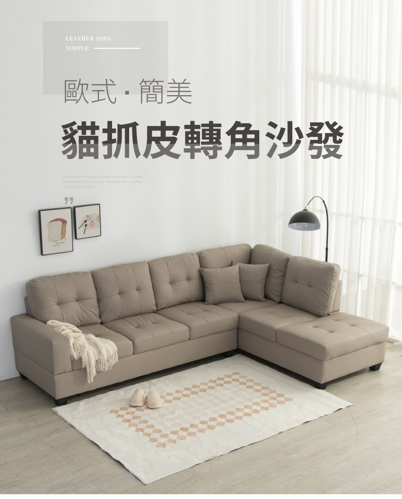 ASSARI-亨利輕柔貓抓布L型沙發(四人座+腳椅)
