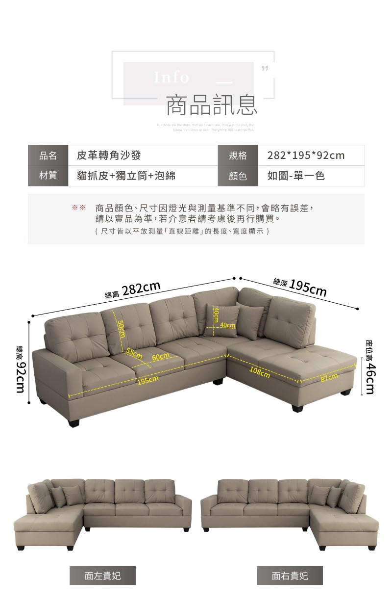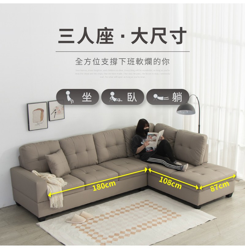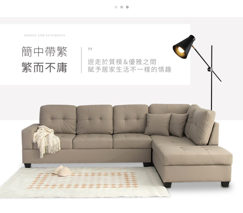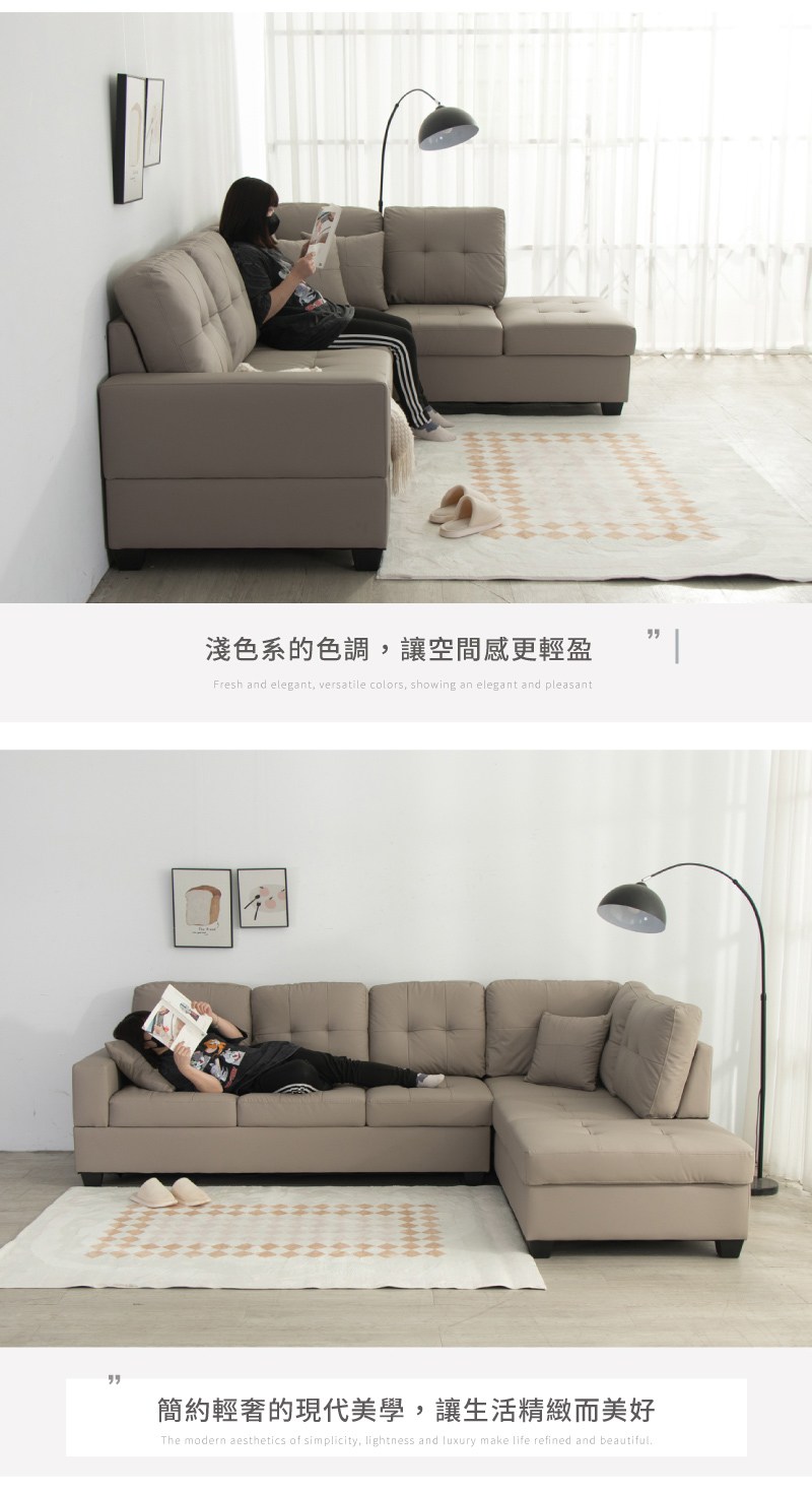 RICHOME 艾麗森無線充電L型布沙發W211xD146xH84.5 CM