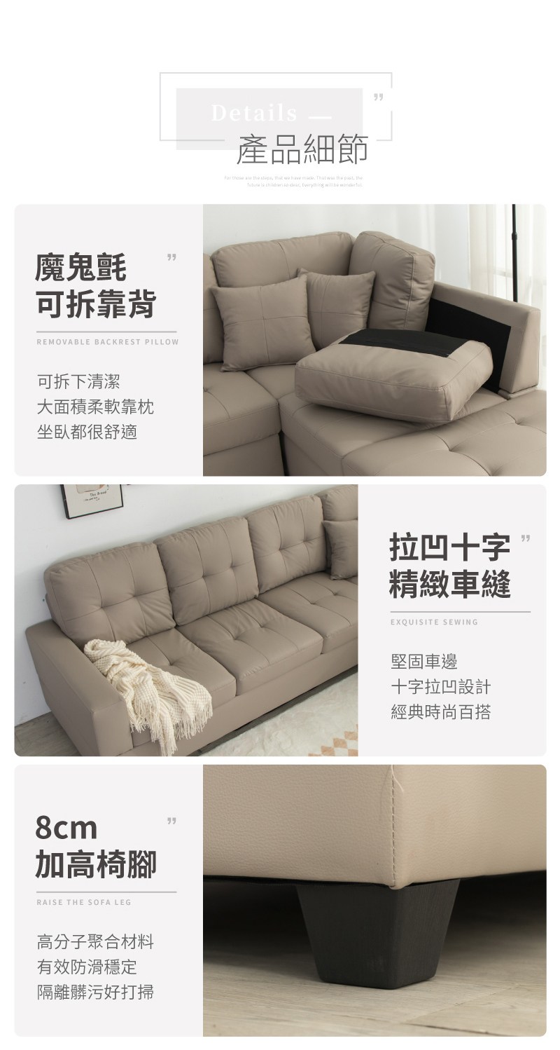 文創集 班達透氣皮革L型沙發組合(四人座+椅凳組合)-267x160x100cm免組