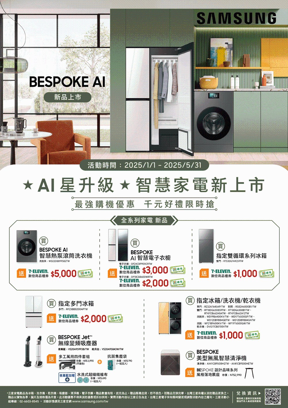限期贈1千禮券 Samsung 三星 12KG BESPOKE設計品味系列 蒸洗脫烘智慧變頻滾筒洗衣機 WD12DB9B84GNTW