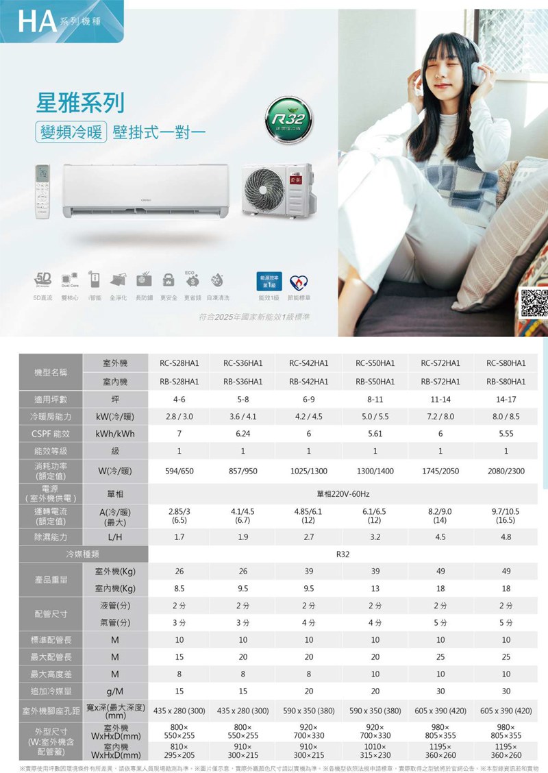 Haier海爾3坪變頻冷暖分離式冷氣(含標準安裝) HAC-P23HB-HAS-P23HB