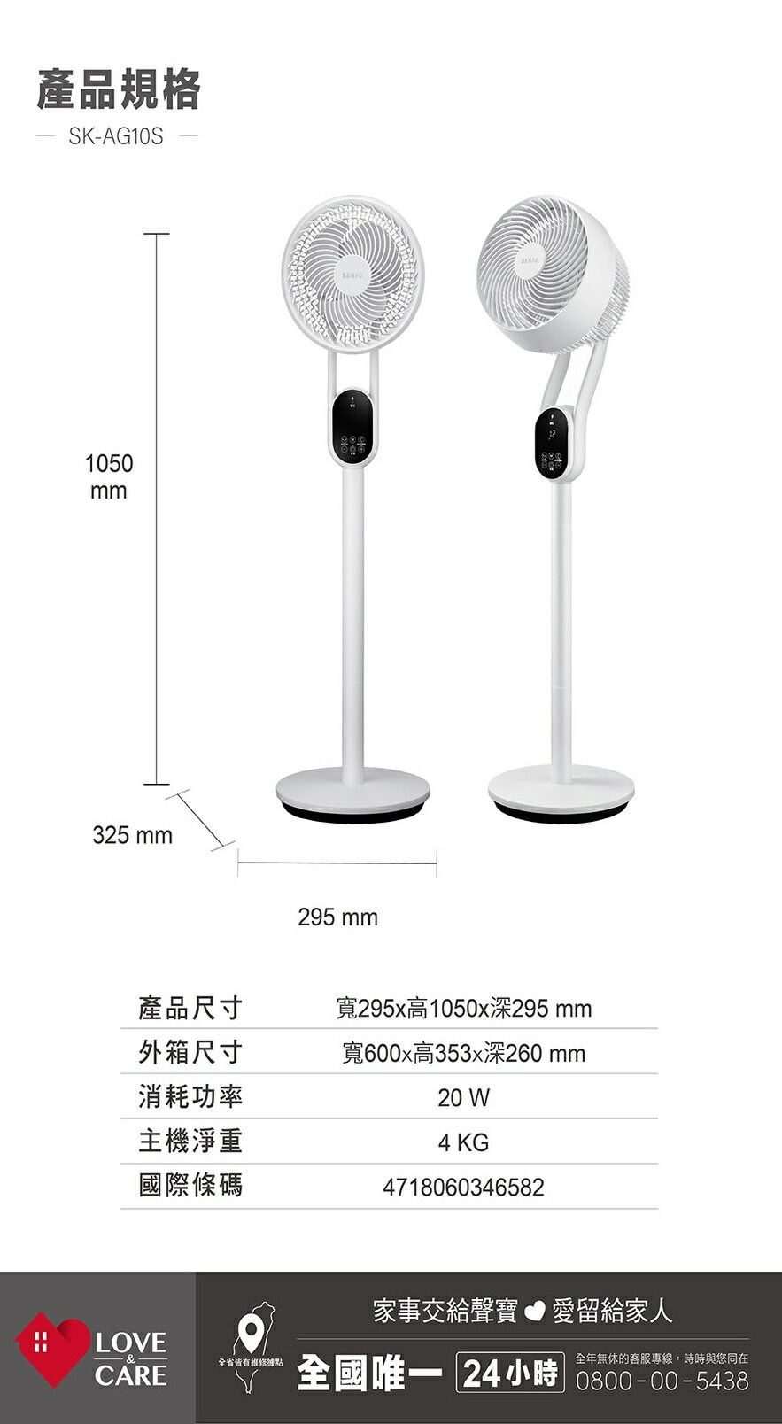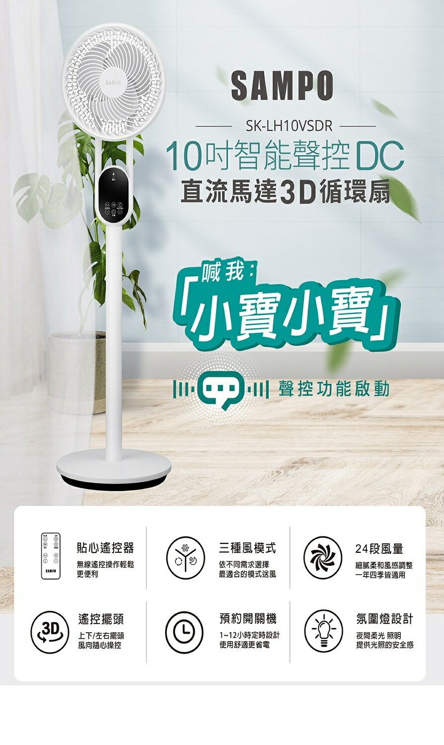 SAMPO 聲寶 SK-LH10VSDR 10吋聲控DC馬達3D循環扇