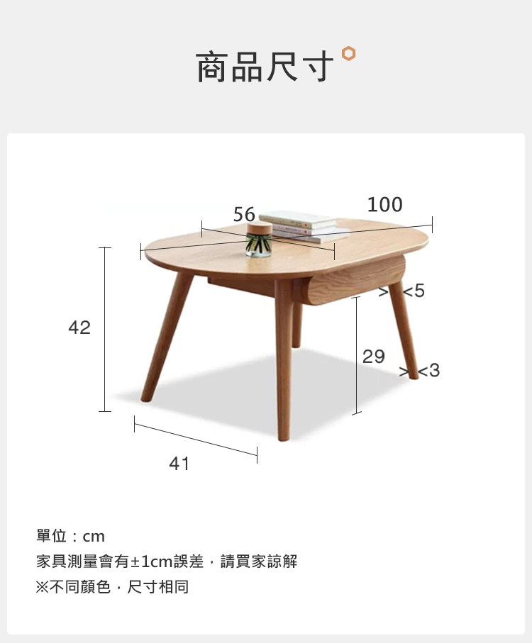 *注意:以下為情境示意圖,實際商品款式為柏林橡木1M圓弧抽屜實木茶几 Y83J44-原木色