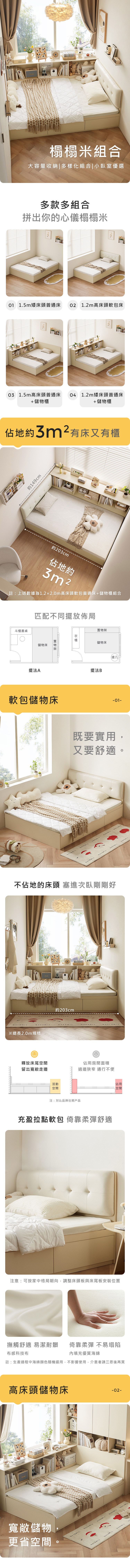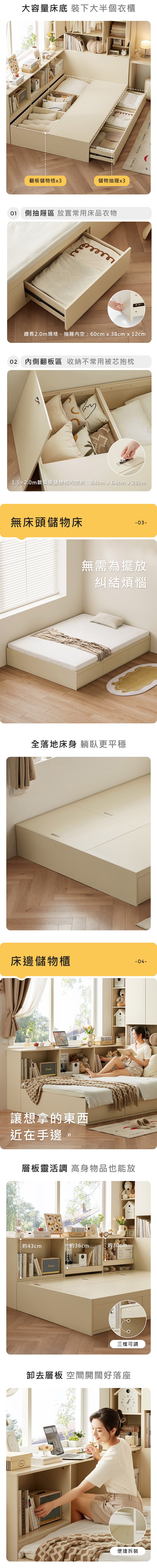 *注意:以下為情境示意圖,實際商品款式為奶油風塌塌米雙人150x190抽屜收納床架 QE3A