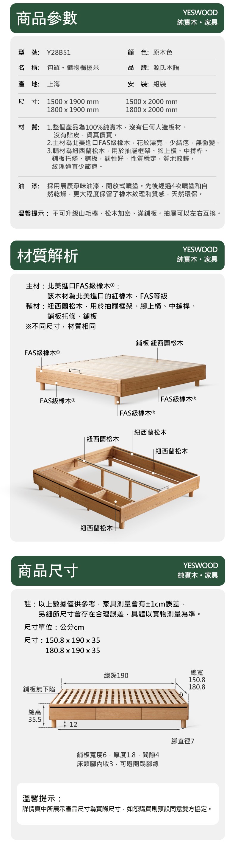 源氏木語日式橡木雙人150x190抽屜收納床架 Y28B51