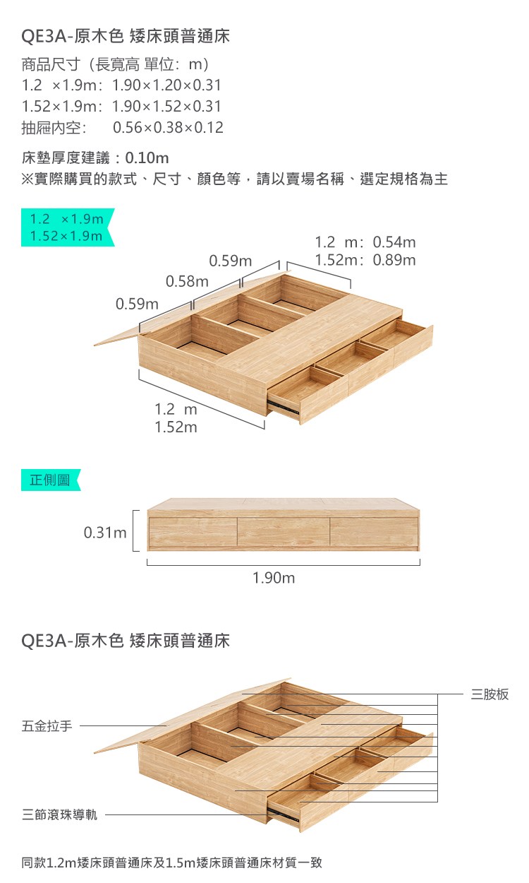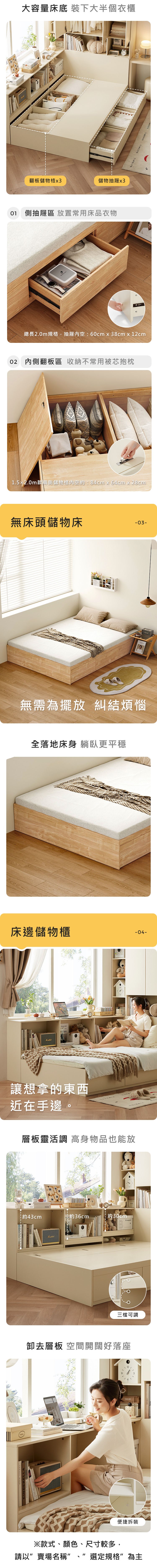 *注意:以下為情境示意圖,實際商品款式為北歐風塌塌米單人加大120x190抽屜收納床架 QE3A