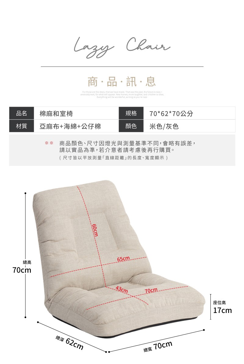 【好氣氛家居】日系和風棉麻舒適加大單人沙發/和室椅/懶骨頭/懶人沙發/休閒椅(六段調灰色