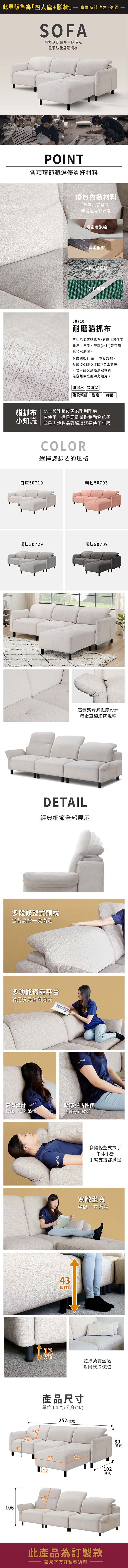 ASSARI-奈爾機能L型貓抓布沙發(四人座+92x76cm腳椅)淺灰