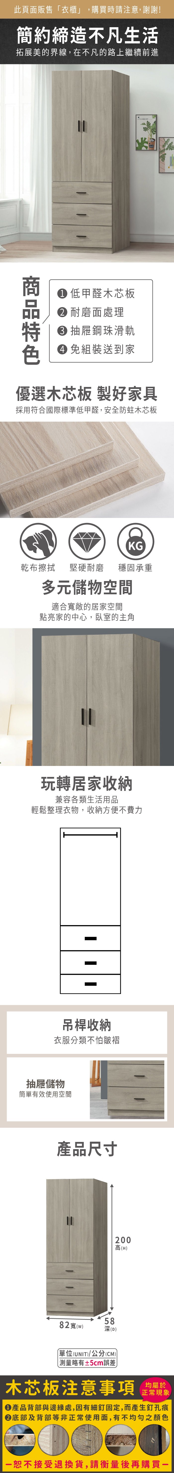 ASSARI-金碧2.7尺單吊三抽衣櫃(寬82x深58x高200cm)
