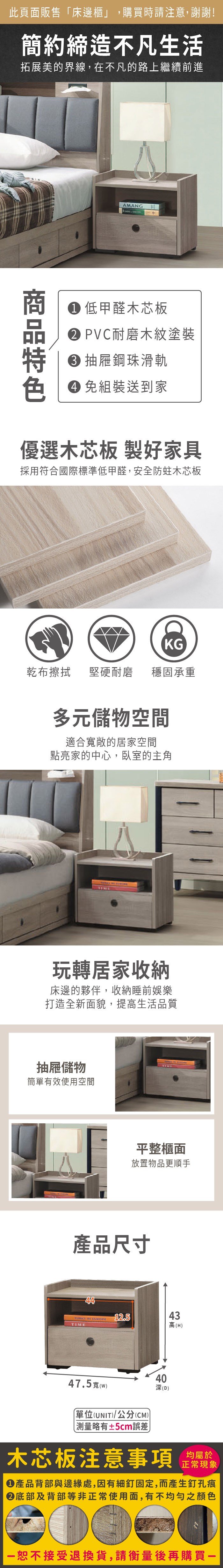ONE生活 千宜白原切床頭櫃 寬48公分