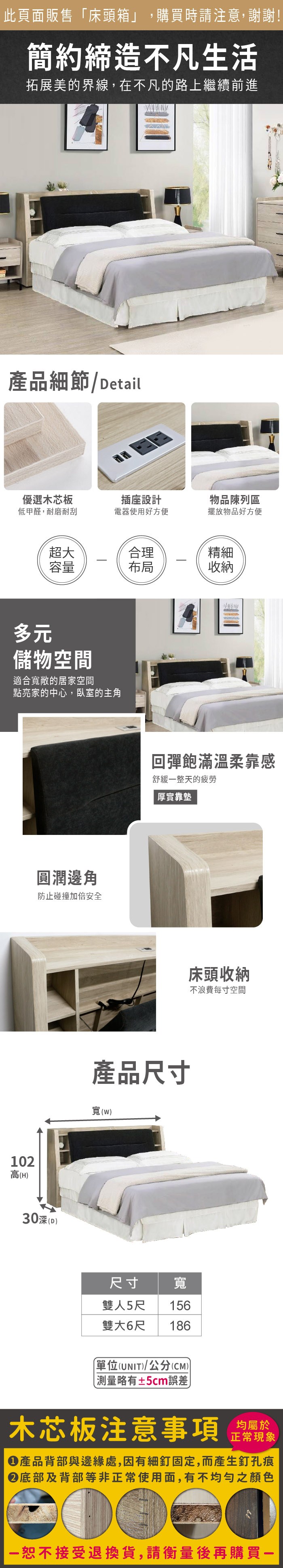 IHouse-艾琪藝 長方格貓抓皮(床頭+二抽底)房間2件組單大3.5杏仁黃+玫瑰灰