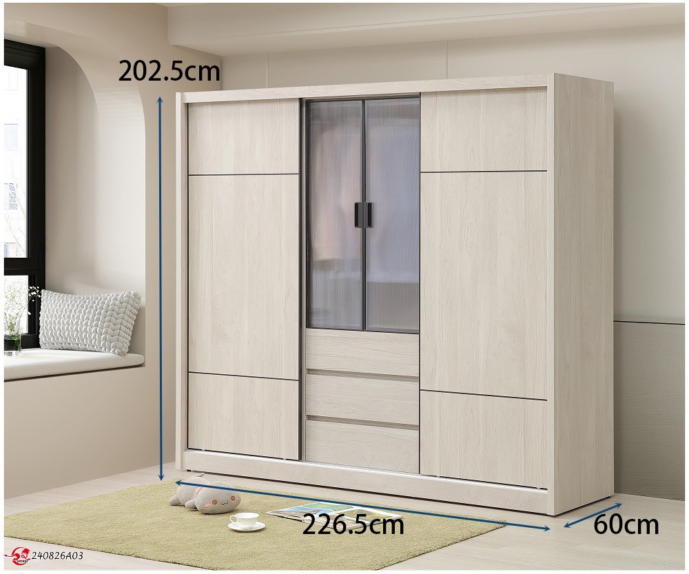 尺寸規格 :寬 226.5 X 深 60 X 高 202.5 公分