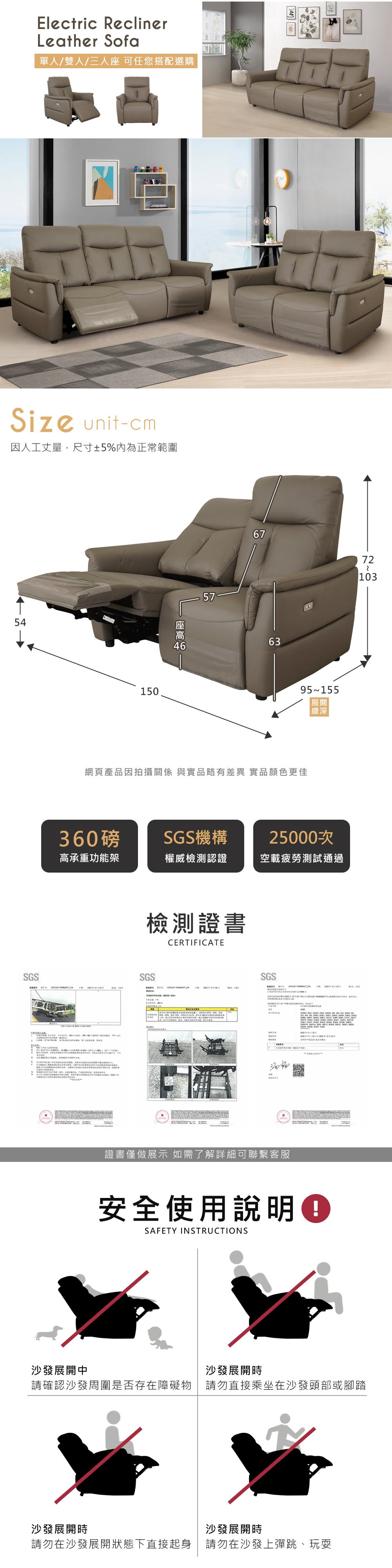 IHouse-巴斯 電動款 貓抓皮沙發躺椅 功能單人躺椅