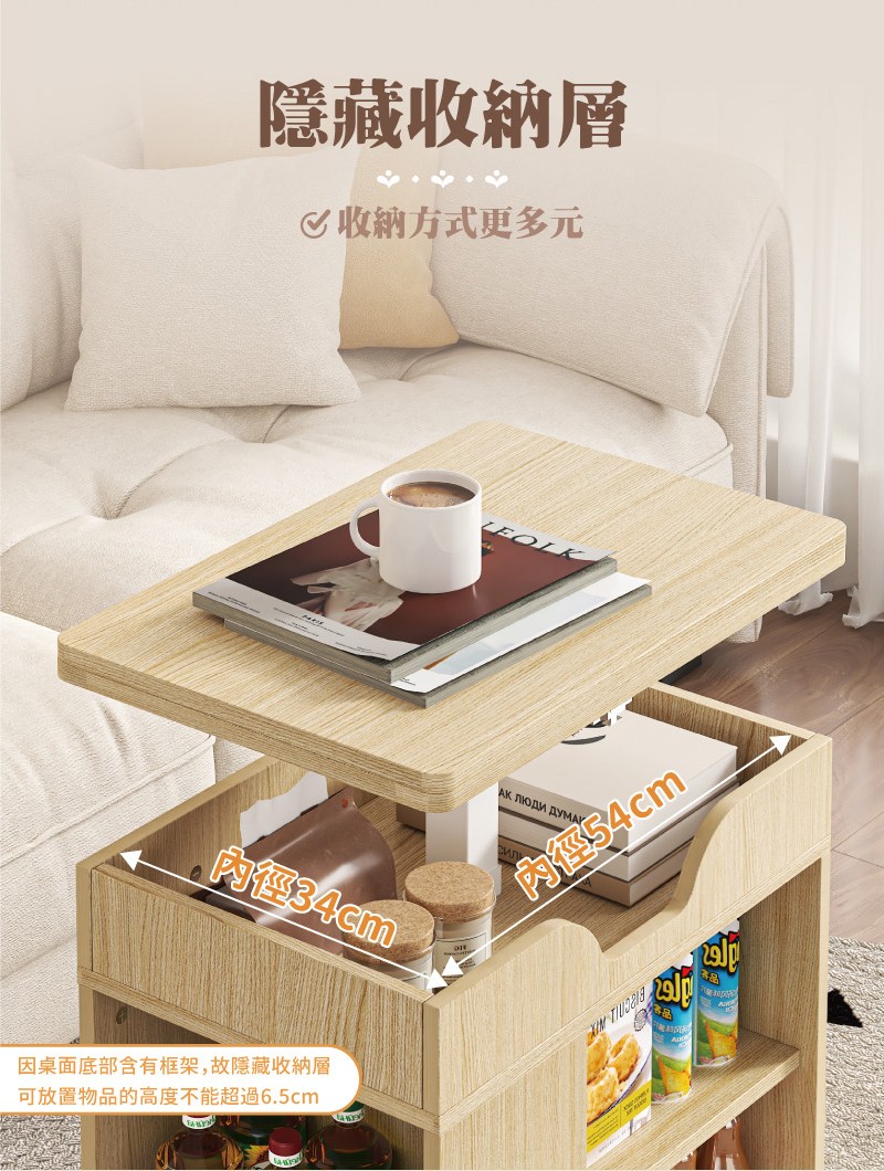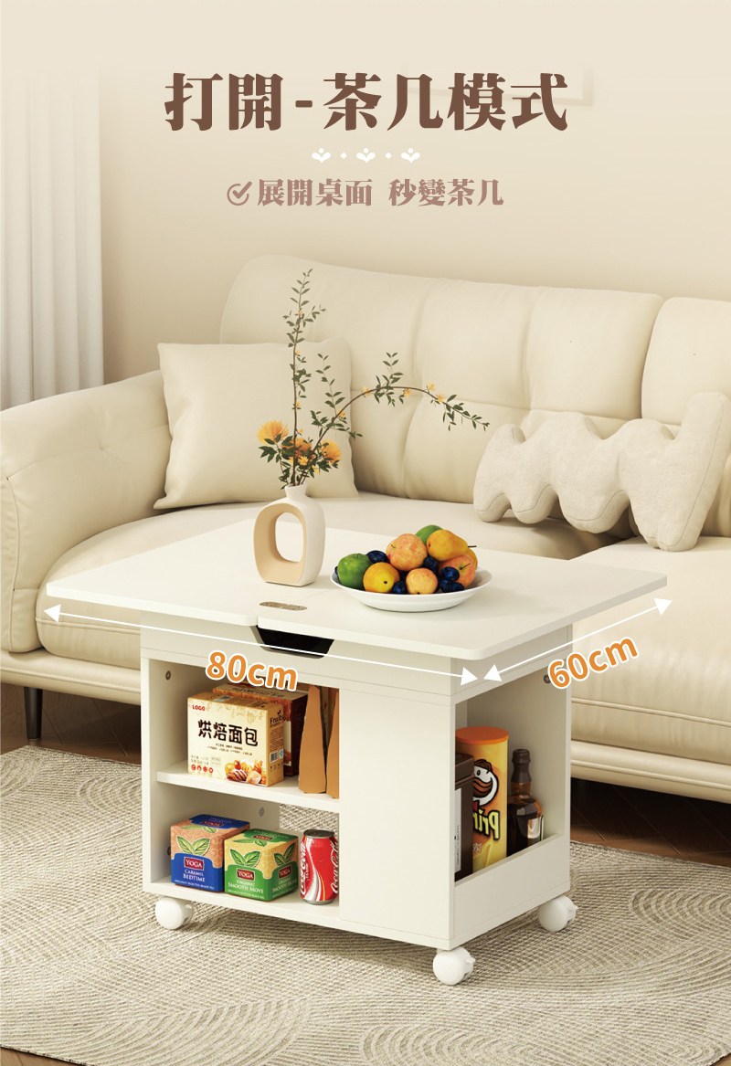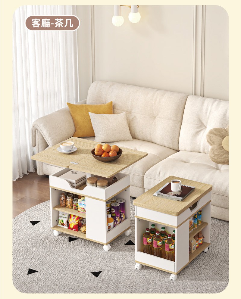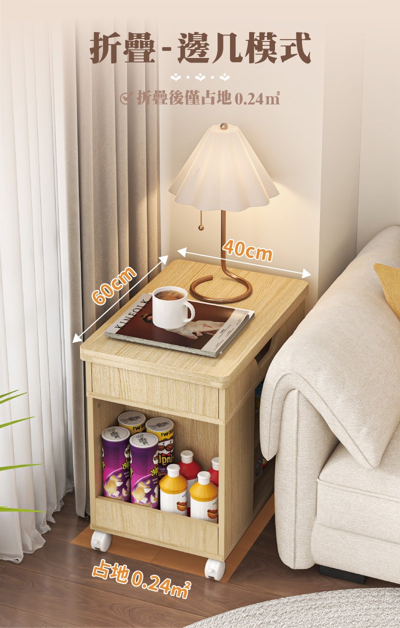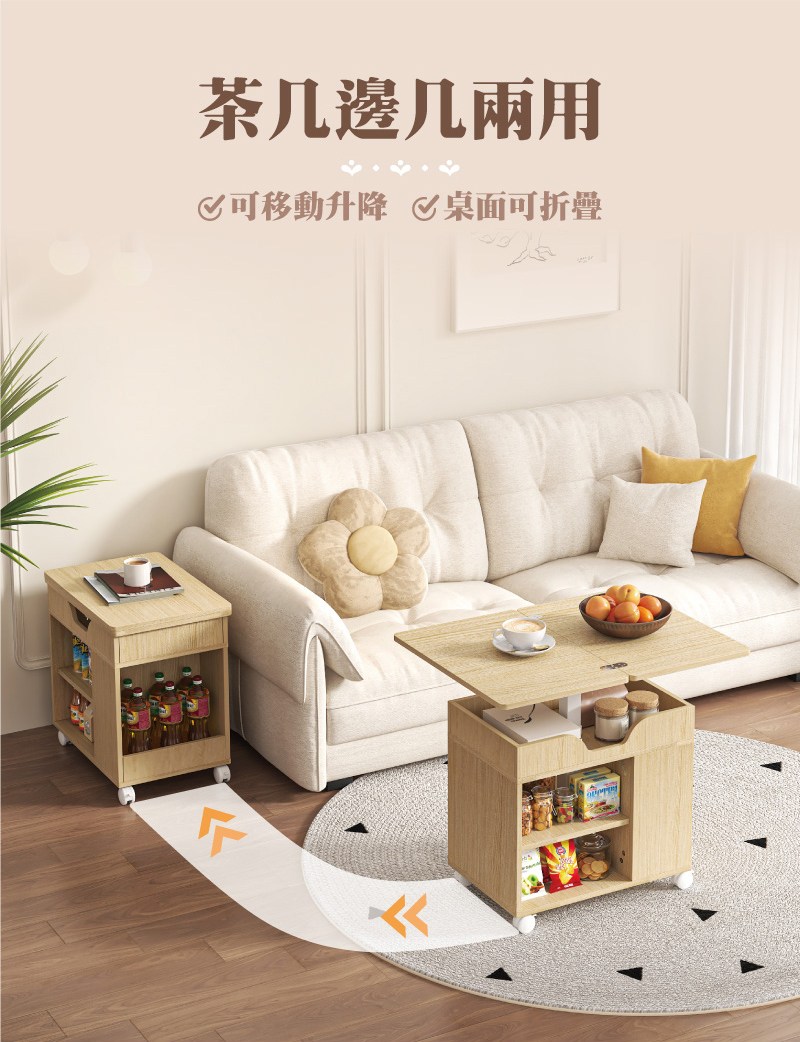 點我下載【慢慢家居】免組裝-桌面可展開可移動氣壓式無段升降茶几 邊桌 邊几 (SGS低甲醛 餐桌 升降桌)摺疊升降邊几-撞色