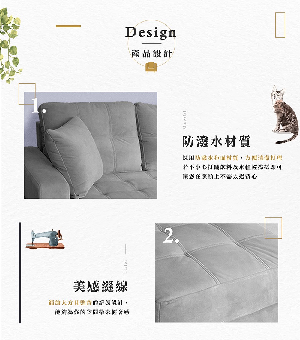 本木家具-安格斯 舒適護腰耐磨貓抓皮2人坐沙發