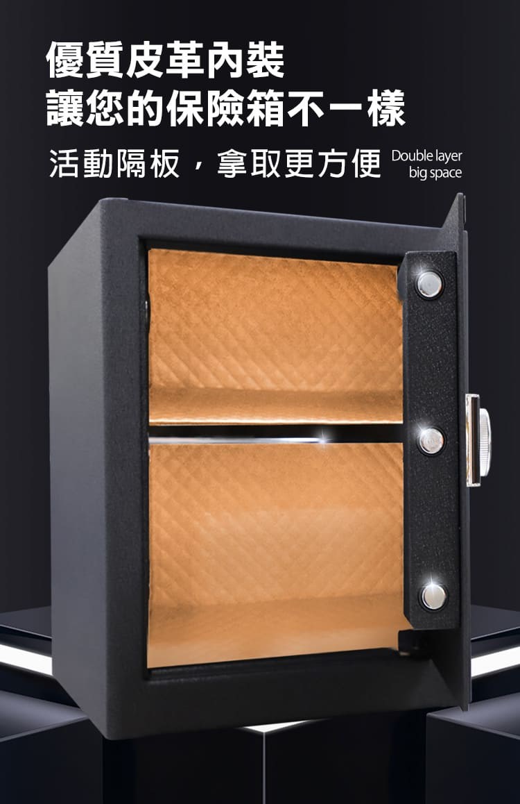 家用指紋保險箱 48公分高密碼保險箱 雙層大空間 A4資料夾可放 48NFO-科技黑黑